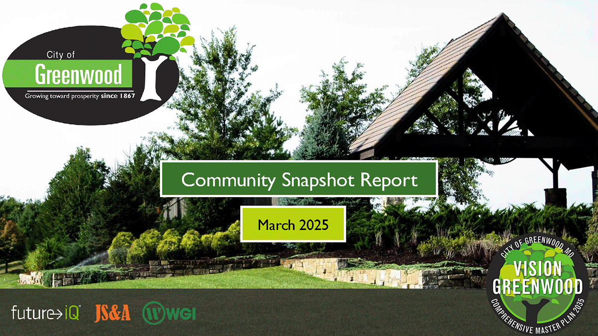 The City of Greenwood is a vibrant community of 6,123 residents located approximately 20 miles South and East of Kansas City, Missouri in Jackson County. It is said that the name of Greenwood was selected because of the beautiful elm trees in the area, and the City’s logo incorporates the tree into its branding.